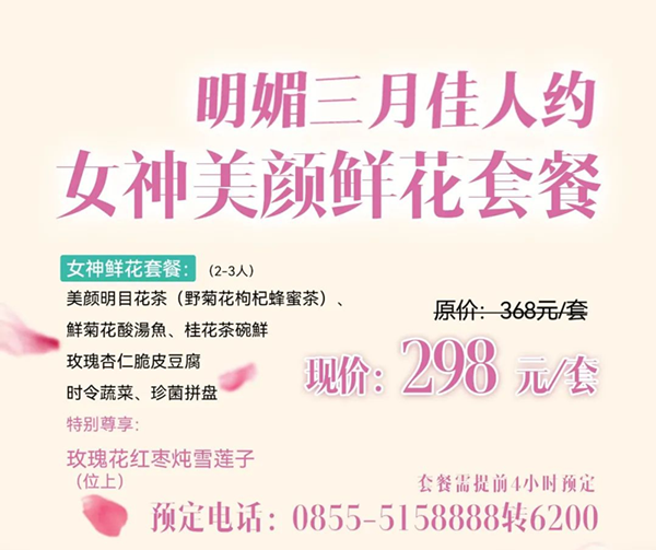 提前預定長桌宴晚餐(40元/人),可免景區門票,有效期3月8日當天。(不可參加活動一,僅限前200名)
