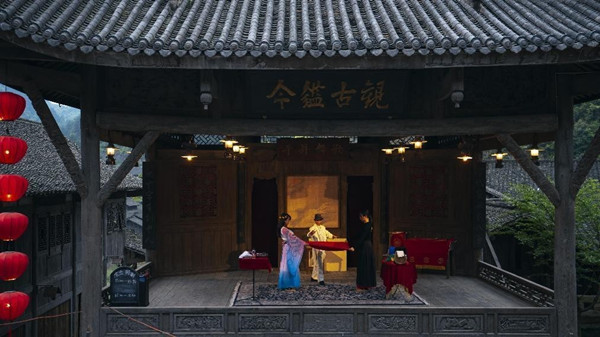 每晚的廻龍島廣場,還有精彩紛呈的儺面舞表演。儺面舞起源于儺戲,借以貴州方言演繹的儺戲選段傳達酬神還愿、祈福平安的美好祝愿。儺面舞作為一種混合型的古老藝術形式,具有鮮明的地域特色以及豐富的文化內涵。