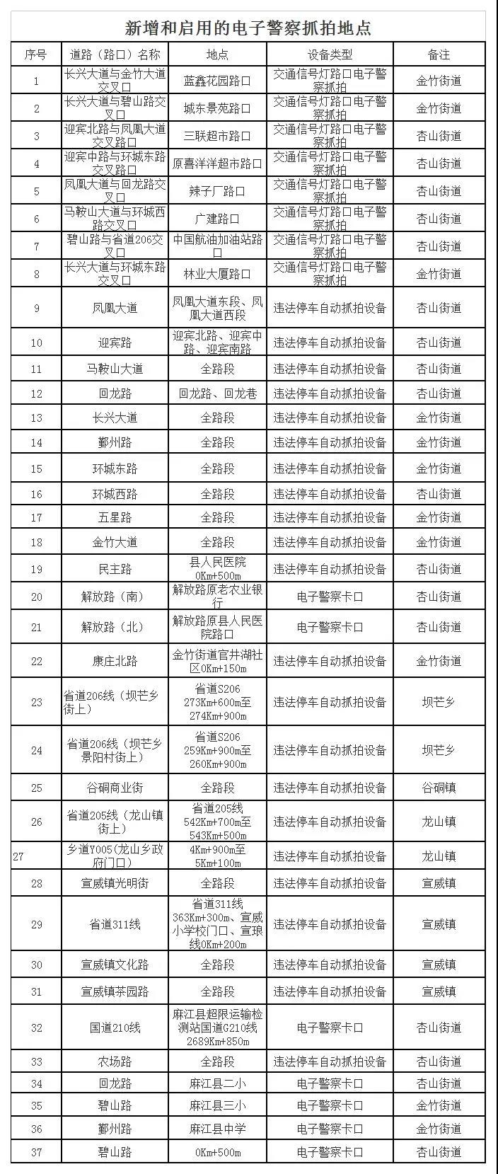 附件:新增和啟用的電子警察抓拍地點