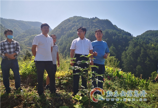 譚夔(右二)實地走訪調研龍江村花椒種植基地