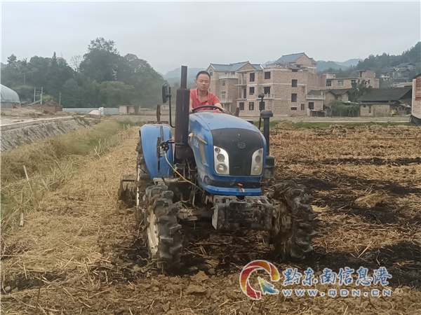 貴州財經(jīng)大學教授梁龍博士駕駛翻犁機在大壩上犁地
