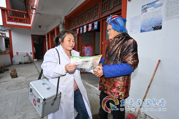 劉征秀(左)進村入戶向村民宣傳醫療保健知識
