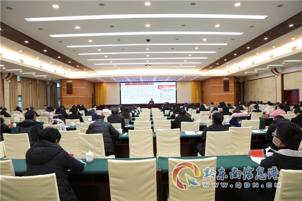 州直屬機關、事業單位各黨委(黨總支、黨支部)負責同志、黨務工作者代表、副科級以上干部職工代表,州直機關工委全體干部,共計120余人聆聽報告會。(金應洪)