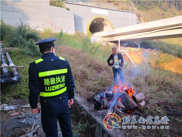 當(dāng)日17時許,十三大隊執(zhí)法人員對S88沿榕高速K395+000上行平永河大橋進(jìn)行日常檢查時,發(fā)現(xiàn)一人在橋下公路用地生火取暖。執(zhí)法人員立即將明火熄滅,并對當(dāng)事人進(jìn)行批評教育,告知其在橋下生火產(chǎn)生的濃煙會對橋上行使的汽車安全視距造成影響,更為嚴(yán)重的是此舉嚴(yán)重威脅了橋梁的安全。經(jīng)教育當(dāng)事人意識到該行為的危險性,保證以后不會發(fā)生類似的違法行為。