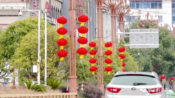 記者在縣城北上片區(qū)、老城區(qū)等路段看到,道路兩旁掛起了造型統(tǒng)一的紅燈籠,沿街商場(chǎng)店鋪外也懸掛起了大小不一的燈籠及裝飾品,放眼望去格外的喜慶。