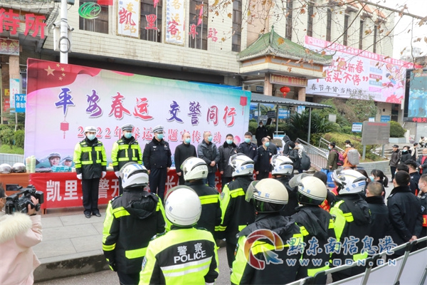 1月17日,黔東南州交警支隊、黔東州融媒體中心、凱里市交警大隊、凱里汽車運輸(集團)有限責任公司聯合舉行春運啟動儀式,并開展春運首日交通安全宣傳活動。各地交警大隊也紛紛開展形式多樣、豐富多彩的交通安全宣傳活動,組織宣傳民警、輔警走上街頭、走進客車站、高速服務區等地通過擺放宣傳展板、懸掛橫幅、發放宣傳資料等方式,面對面向過往群眾及駕駛員普及安全法律法規和春運出行常識。并利用典型事故案例,讓群眾充分了解超員、超速、疲勞駕駛、酒駕、涉牌涉證、乘車不系安全帶等重點違法行為的嚴重危害性,呼吁大家自覺抵制交通違法行為,養成良好的出行習慣。