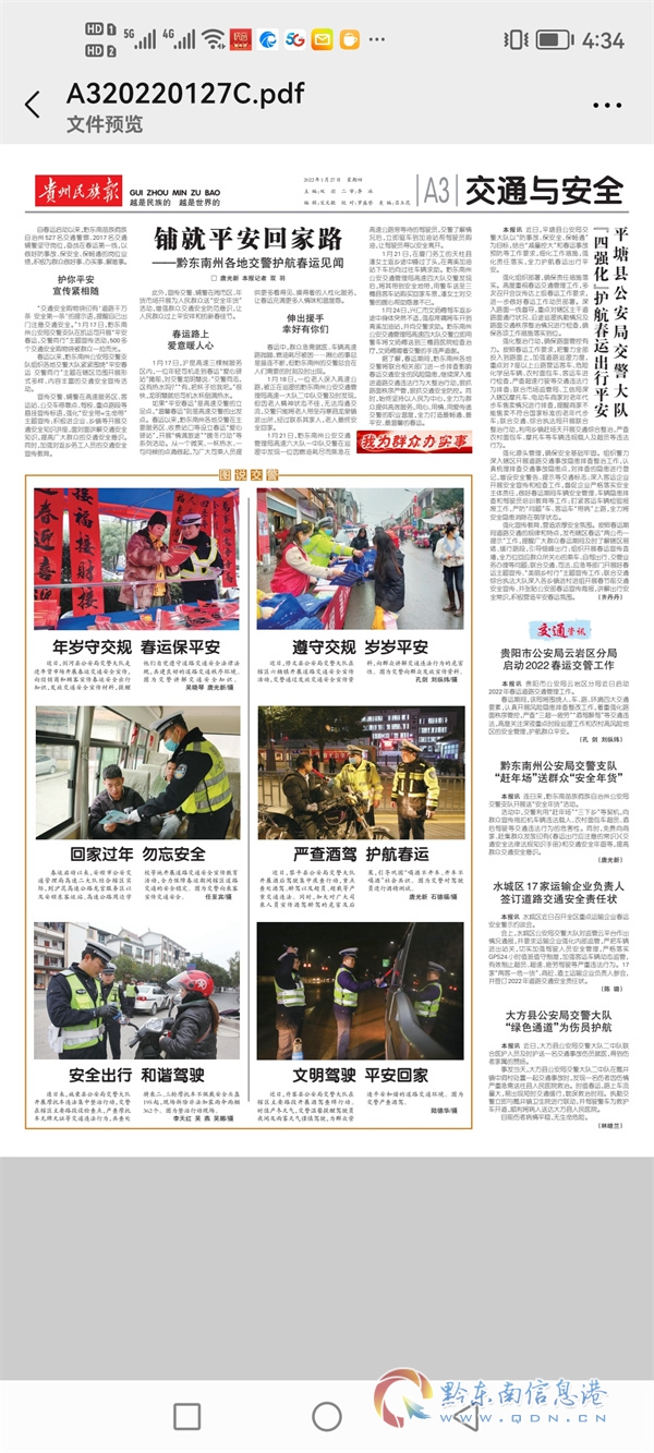 本網訊 為了做好春運期間交通安全宣傳,確保群眾春運出行安全,預防和減少春運期間交通事故的發生。貴州省黔東南州公安局交警支隊及時轉發省公安廳交通管理局《關于做好2022年春運交通安全宣傳工作的通知》、《關于開展“平安回家,團圓過年”交通安全警示宣傳活動的通知》,并結合轄區實際下發《關于做好2022年春運交通安全宣傳工作的通知》,在全州范圍內開展鋪天蓋地的交通安全宣傳活動,力保春運期間道路交通安全、暢通、有序,保障群眾的出行安全。