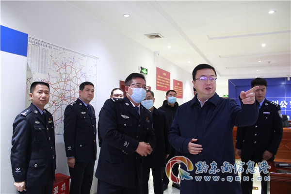 2月6日,黔東南州委書記羅強一行來到在州交警支隊交通指揮中心、滬昆高速凱里收費站執勤服務崗點、余冊高速丹寨收費站執勤服務崗點慰問堅守崗位民警、輔警,并通過州交警支隊交通指揮中心視頻監控大屏慰問堅守一線交通民警、輔警,感謝大家為全州公安交管工作做出的貢獻,向大家致以新年問候。