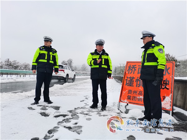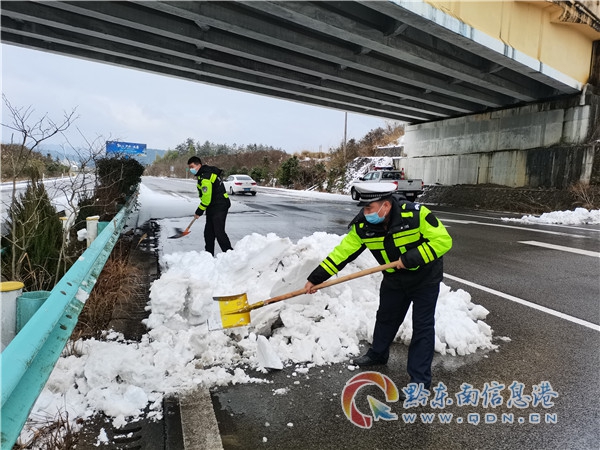 1月31日,榕江、丹寨等交警大隊迅速行動,全員出動,撒鹽除冰、清除路障,全力確保群眾冰雪天氣出行安全。