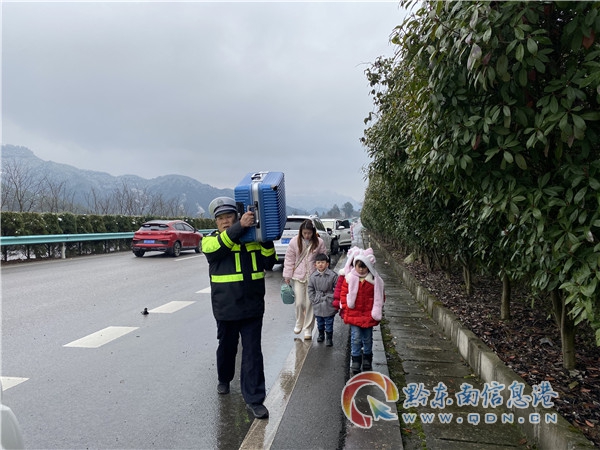 1月31日,天柱縣公安局交警大隊大隊長龍步文在開展路況巡查途中,遇到回三穗縣過年的劉榮厛一家三口因車輛故障被困,龍步文立即幫忙排除,使劉榮厛一家三口得以回家過年。