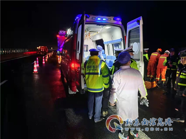 該處處于風口,溫度較低,路面濕滑,為了盡快的找到失蹤的駕駛員和避免二次事故的發生,一路多方分成三組,一組負責管控交通并聯系消防部門前來救援,二組負責到附近尋找駕駛員,三組負責在該處聽聲音和周圍尋找該駕駛員。0時30分許,執法人員聽到了從橋下傳來的求救聲,此時消防救援人員正好趕到場,他們從小路包抄到40米高橋下找到了駕駛員,然后用救護擔架將其固定,交通執法人員與交警、應急、消防部門一起將傷者拉到橋上,隨即120救護人員將其拉到醫院救治。