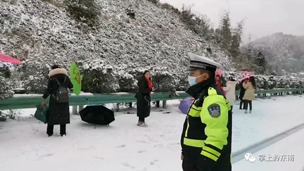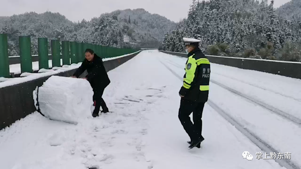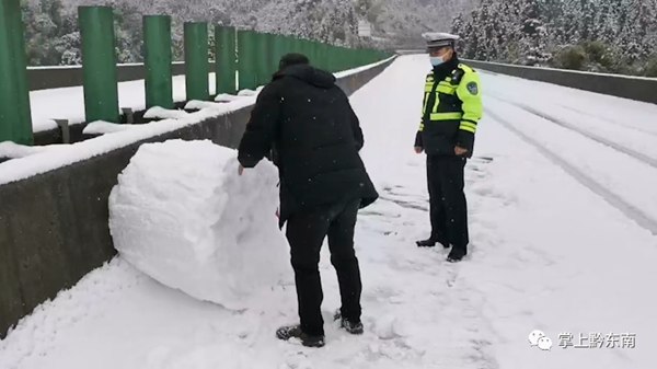 為了確保安全,中午11點—12點鐘,民警在松從高速268km—272km處,發(fā)現(xiàn)路面有很多打雪仗、堆雪人的行為,當(dāng)場進(jìn)行了制止和引導(dǎo)人群下高速公路,并清除了路面的11處雪人堆。
