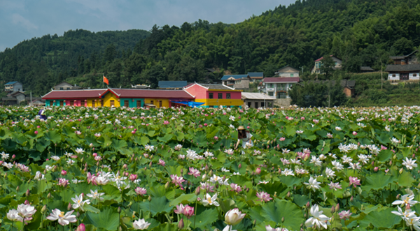 州級生態村:岑鞏縣客樓鎮下寨村,百畝荷花競相綻放,村民走上致富路。