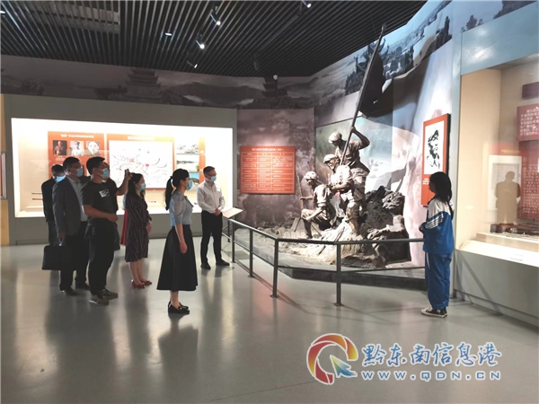掛牌后,黎平紀念館館長張中俞向黃麗一行介紹和講解了紀念館的基本概況、黎平會議的背景、少共中央局及“少共國際師”在黔東南的革命斗爭史。在紅領巾小小講解員的解說中,共青團黔東南州委調研組、共青團黎平縣委、黎平縣教科局、黎平縣少工委相關負責同志與紅領巾講解員一起重溫了黎平會議的光輝歷史,追尋紅色足跡,緬懷革命先烈,表達深切悼念和崇高敬意,領會黎平會議“敢闖新路、敢于突破、敢于勝利”的偉大精神,感悟共產黨人的初心和使命。