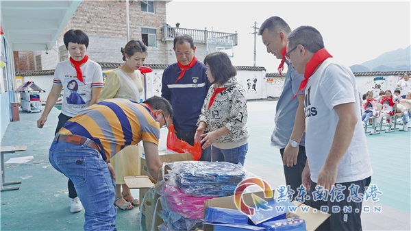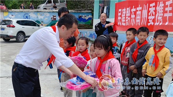 凱里市三棵樹鎮大烏燒小學的23個孩子,也收到了民建黔東南州委、黔東南信息港送去的書包、文具盒和新華字典等學習用具及部分體育用品,感受到節日的祝福。凱里市鄉村振興局和大烏燒村兩委領導及大烏燒小學領導參加了捐贈儀式。