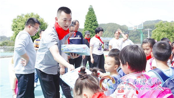 本網訊 6月1日上午,民建黔東南州委,民建州直三支部,黔東南信息港走進黃平縣重安鎮重興楓香小學,凱里市三棵樹鎮大烏燒小學開展“童心永在·笑口常開,慶祝六一兒童節”系列愛心活動,為兩所小學的孩子們送上學習用品、體育用品等愛心節日禮物。
