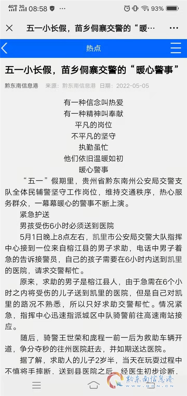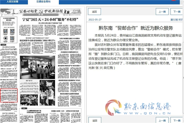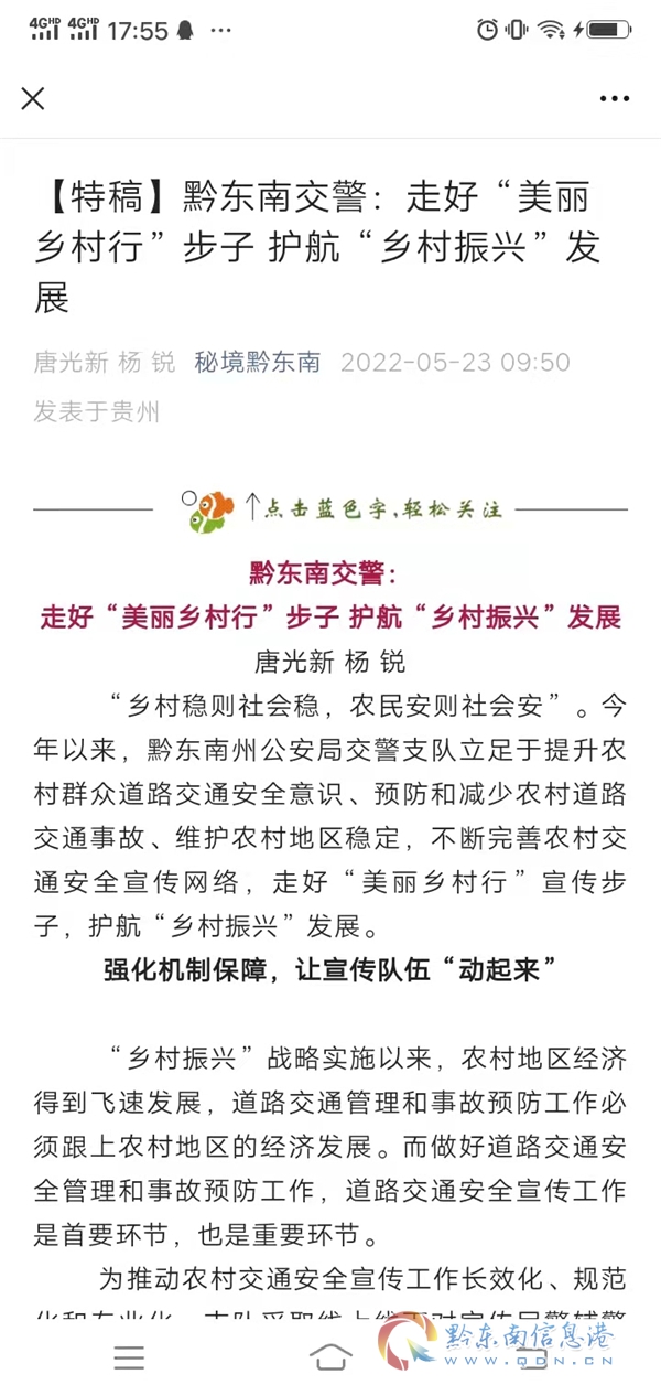 同時,還積極采寫新聞稿件,通過各級新聞網(wǎng)站、雙微、抖音等平臺發(fā)布。其中:《中視網(wǎng)》、《秘境黔東南》《黔東南信息港》等網(wǎng)站和微信公眾號及時推出《堅守與感動無處不在----黔東南交警“五一”期間好人好事層出不窮》、《黔東南州:走好“美麗鄉(xiāng)村行”步子 護航“鄉(xiāng)村振興”發(fā)展》、《 黔東南交警與郵政攜手把車管所“搬”到老百姓家門口》、《“六一”兒童節(jié)前夕,苗鄉(xiāng)侗寨交警進校園送“安全禮包”》等長篇稿件展現(xiàn)了苗鄉(xiāng)侗寨交警堅守崗位,堅守一線,一心為民辦實事的情懷。(唐光新 楊 銳)
