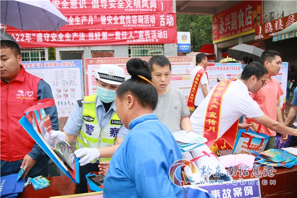 6月16日,黔東南州2022年“安全生產月”宣傳咨詢日活動在凱里市萬博廣場舉行,黔東南州公安局交警支隊、高速一大隊、凱里市公安局交警大隊聯合搭臺通過設立咨詢臺、擺放展板、發放資料、剖析典型事故案例、宣講交通法規等形式開展宣傳教育活動。