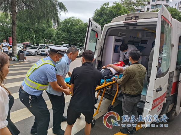 本網訊 6月19日下午15時,貴州省黔東南苗族侗族自治州高速四大隊民警楊毅在滬昆高速臺江段巡邏,發現一小型轎車遇到困難停靠路邊,經詢問,車上一名乘車人被五步蛇咬傷危在旦夕,求助送凱里搶救。