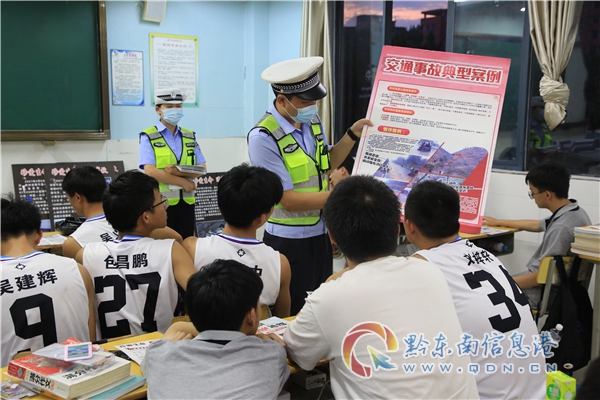 6月8日,黎平縣交警大隊深入縣第四中學向完成高考即將離校返家的學生們上一堂交通安全課。
