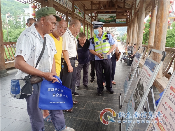 6月7日,高速三大隊來到鎮遠縣城區風雨橋上開展“美麗鄉村行”交通安全巡回宣傳活動。