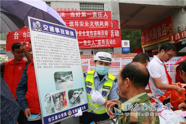 臺江縣交警大隊聯合多部門開展“安全生產月”暨安全宣傳咨詢活動。