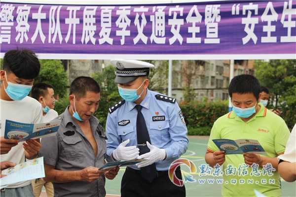 6月5日,凱里市交警大隊利用農村趕集日深入三棵樹鎮掛丁村開展夏季交通安全宣傳活動。