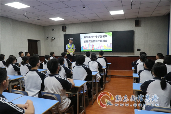6月28日,黔東南州公安局交警支隊民警向堯走進黔東南州振華中學開展暑期交通安全宣傳教育主題班會活動,為高一(10)班50多名師生上交通安全知識課。民警向堯具有豐富的交通安全知識講座經驗,他用大量的交通安全教學視頻和發生在學生身邊的真實案例,深入淺出的為學生們上了一堂生動的交通安全知識課,并通過提問和互動環節加深學生對交通安全知識的理解和掌握,提醒廣大中小學生交通安全不容忽視,闡述遵守交通法規重要性。當天,全州1383所中小學校的588359名學生通過智慧教育云平臺學到這節生動的交通安全課,實現了全州中小學生道路交通安全宣傳教育全覆蓋。