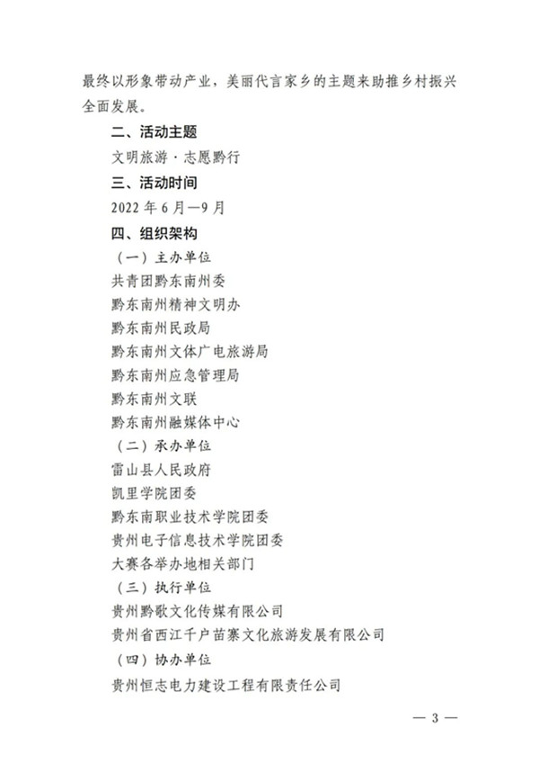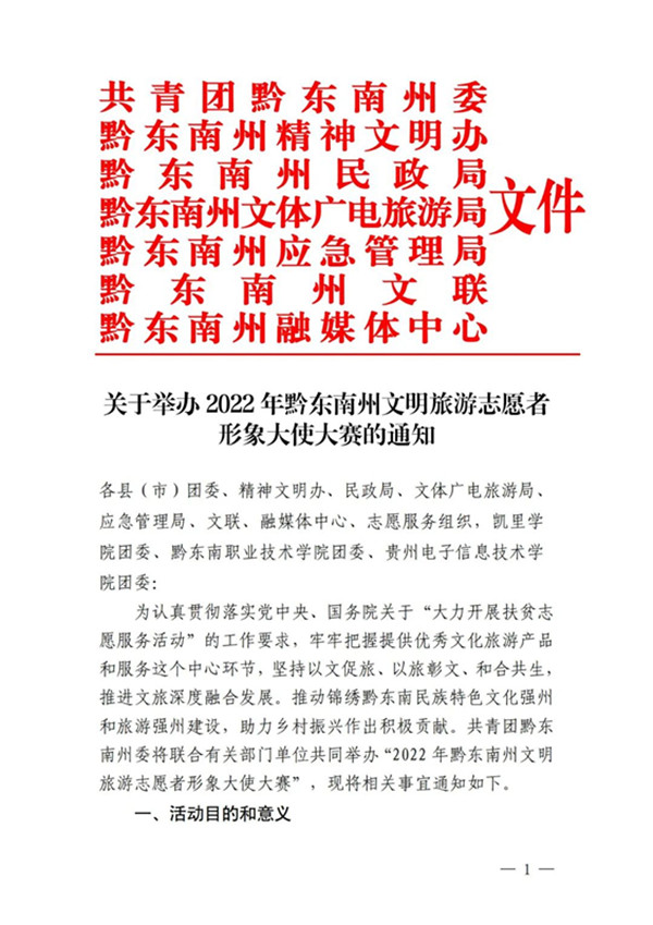 鞏固脫貧攻堅成果、助力鄉村振興,推動黔東南州經濟社會高質量發展,建設百姓富、生態美的錦繡黔東南新未來。共青團黔東南州委將聯合有關部門單位共同舉辦“2022年黔東南州文明旅游志愿者形象大使大賽”。