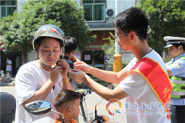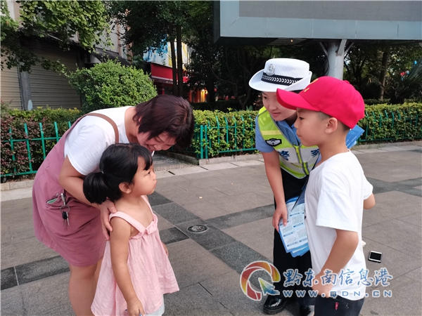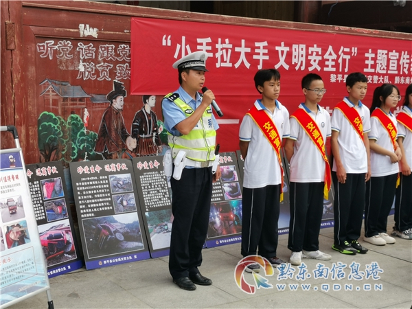 在榕江、施秉、三穗、岑鞏、鎮遠、錦屏等縣城街頭,人們會看到一群群學生在交警帶領下,在路口協助民警勸導非機動車、行人交通違法行為。這是黔東南州公安局交警支隊開展“小手拉大手 文明安全行”主題交通安全宣傳教育活動一個縮影。