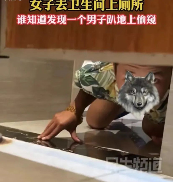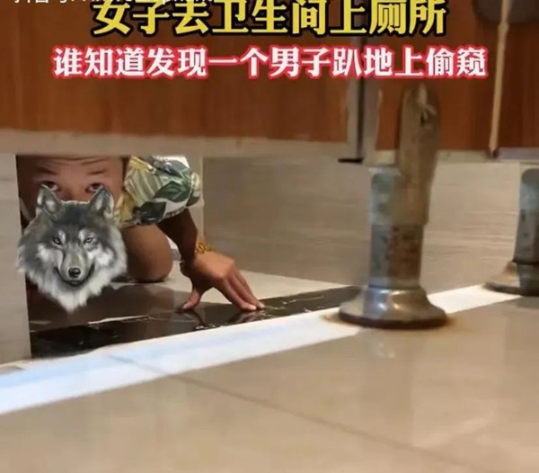 當女子把手機對著門縫錄像的時候,看到一名男子趴在地上,正鬼鬼祟祟的往里看。夸張地講,他眼睛都快瞪出來了。而兩人的舉動,都把對方嚇了一跳。女子趕快收起手機站了起來,而偷窺的男子發現自己已經暴露,就立刻跑出了衛生間。