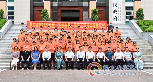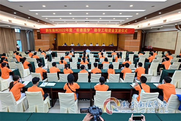 本網訊 為資助黔東南州優秀應屆高中畢業貧困學生圓夢大學,弘揚慈善文化,倡導社會參與慈善事業。8月23日,黔東南州2022年度“慈德圓夢”助學工程資金發放儀式在