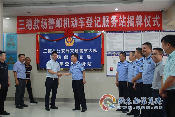三穗縣款場郵政支局機動車登記服務站正式掛牌成立,這是黔東南州公安局交警支隊與中國郵政集團黔東南州公司進一步深化“警郵合作”,充分借助黔東南州郵政通鄉達鎮的服務網點和成熟的服務網絡,將交管業務和郵政網點有機結合、優勢互補,開啟“政企”合作新模式,為廣大群眾帶來全新的一站式“交管+郵政”服務。