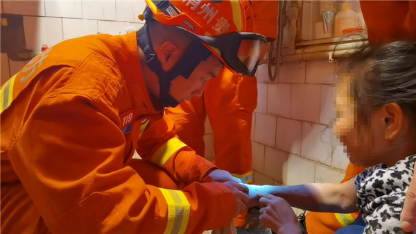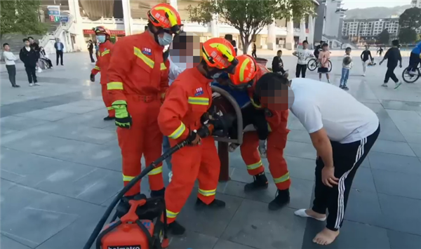 10月16日上午9時許,凱里市消防救援大隊(duì)清江路消防救援站接到群眾報警:“一名女子手不慎被卡蹲便器里,請求幫助。”