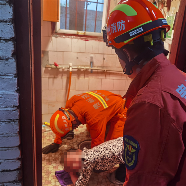 消防救援人員取得被困女子同意后,對蹲便器進(jìn)行破拆,將女子成功救出。