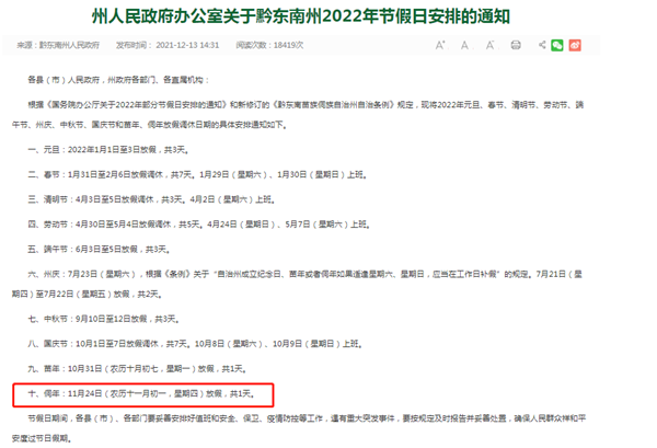 @黔東南人:好消息!本周四(11月24日)放假