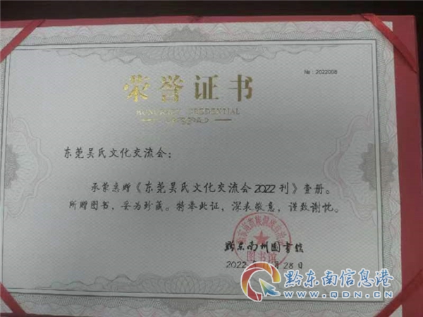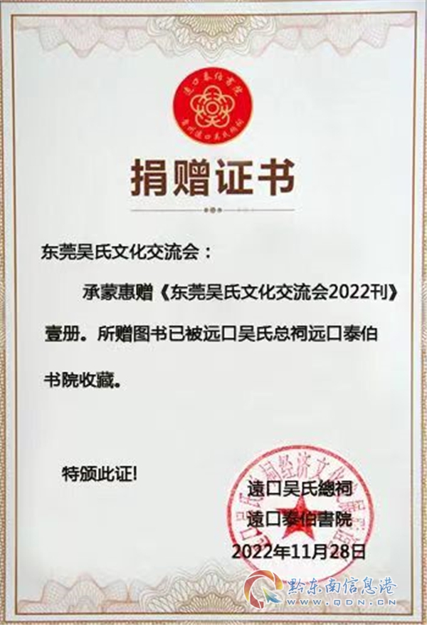東莞吳文化研究會(huì)給黔東南州捐贈(zèng)《2022會(huì)刊》
