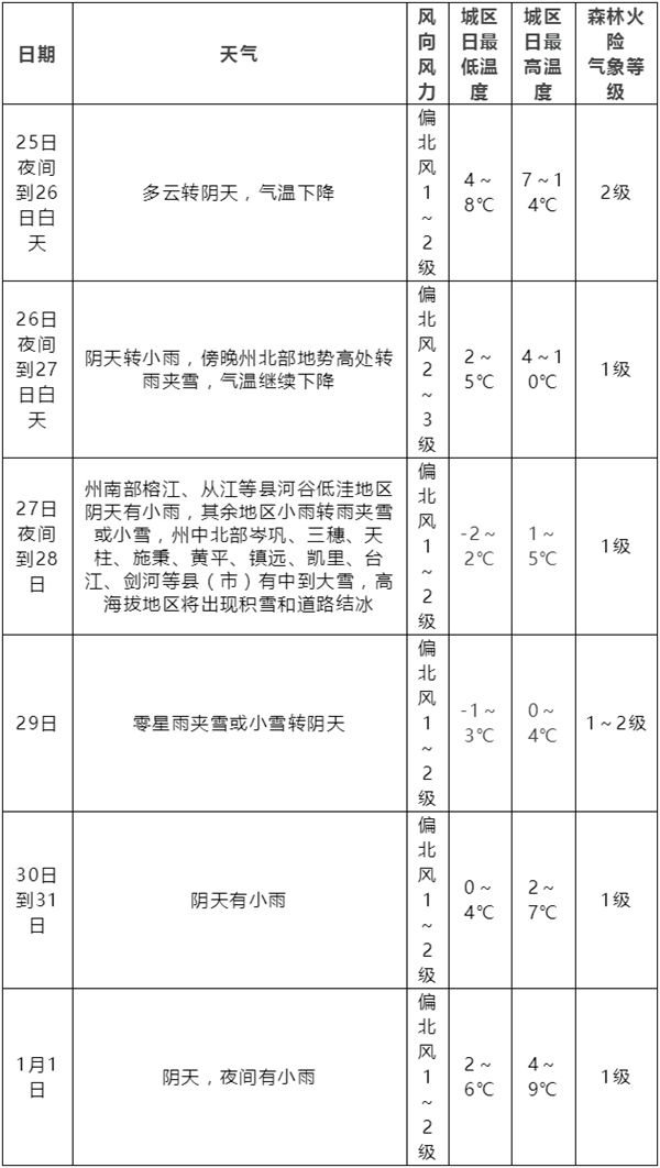 27日夜間到28日有降雪!本周黔東南州以低溫陰雨天氣為主