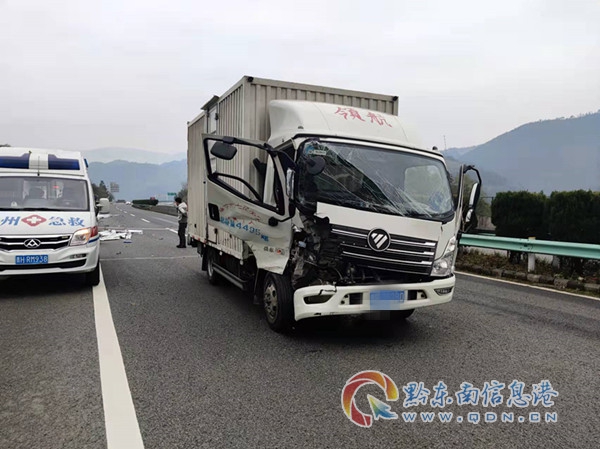 當日9時40分許,貴州省交通運輸綜合行政執(zhí)法七支隊十三大隊接到轄區(qū)高速交警報警,稱廈蓉高速K1219+900上行兩輛貨車發(fā)生追尾造成兩名司乘人員受輕傷及有路產(chǎn)損壞,需交通執(zhí)法人員前來救援。