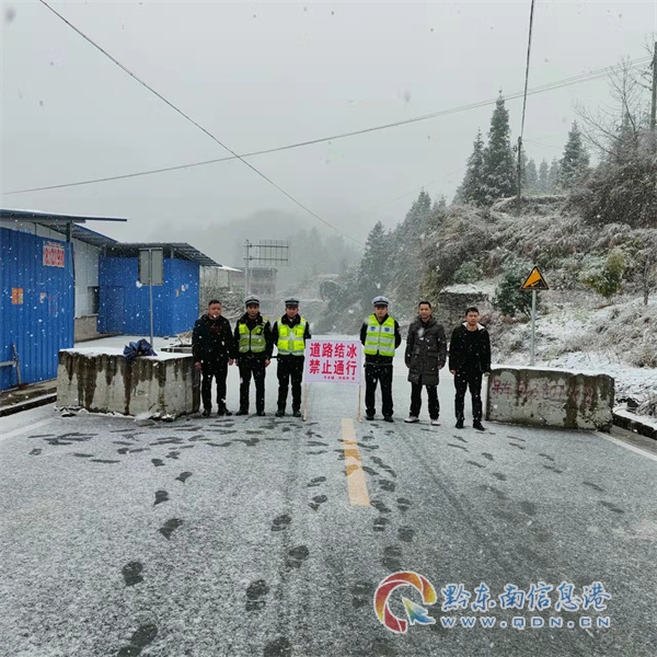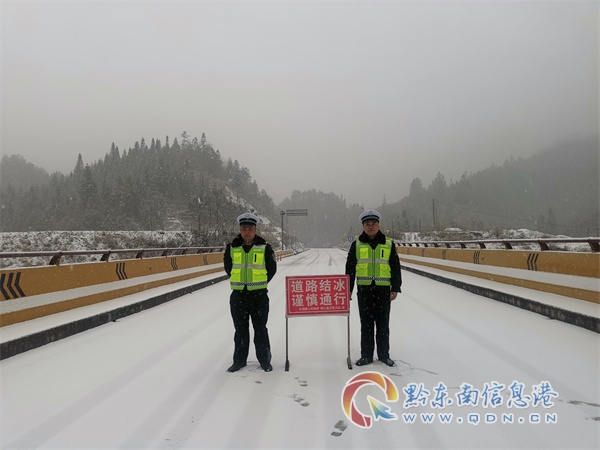 早上7時許,大隊迅速召集全體民警、輔警緊急部署惡劣天氣交通指揮疏導、應急值守、隱患排查工作。大隊各科室、各農村片區中隊主動擔當作為,屯兵路面,將警力、警車、裝備全部投入一線,在各重要路口路段和凝凍結冰路段,通過警車喊話、警笛提示、警力管控等方式,加強對過往車輛的安全提醒。同時,各中隊積極溝通匯報,與轄區黨委政府和有關部門聯勤聯動,在轄區內開展隱患排查、路況巡查工作,及時發現凝凍結冰路段和其他安全隱患,有效管制管控,避免出現安全事件和交通事故發生。