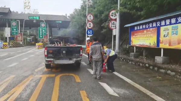 當日上午11時左右,黔東南州公安局交警支隊高速六大隊民警在榕江收費站進站口執勤時,發現迎面駛來的一輛灰色輕型普通貨車后面貨箱有少許白煙冒出,見駕駛員沒有察覺到,民警果斷攔截車輛,并示意駕駛員和乘客全部下車,快速用滅火器滅火。險情排除后,民警查看了車上的貨物,車上裝的都是施工的器材和口袋,為了安全起見,民警要求駕駛員掉頭返回,把車上貨物清理干凈之后再出發。最后,駕駛員感激說:“幸虧民警及時發現,否則后果不堪設想。”