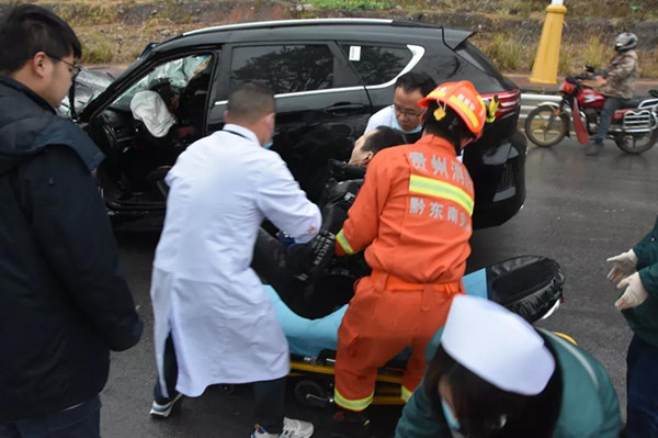 到達現場后,救援人員立即實施救援,由于駕駛員被卡得不是很深,消防救援人員把車門掀開后,將駕駛員救出移交給現場醫護人員。