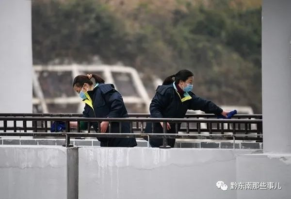 圖為工作人員在新校區進行衛生清潔。龍曉東攝