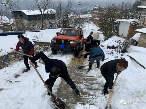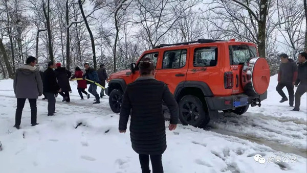 然而正值凝凍雨雪期間,警車無法前往,民警用私車出警,因積雪結冰、路面陡峭導致車輛被困村寨道路中。