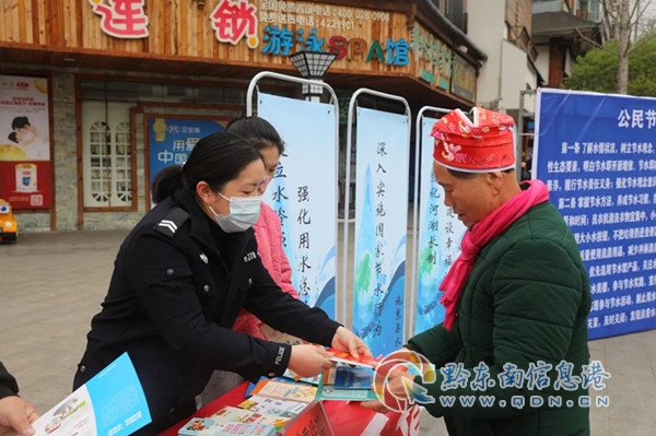 此次活動主要通過懸掛宣傳橫幅、發放宣傳資料、給群眾現場講解的形式,向廣大群眾普及《中華人民共和國水法》《中華人民共和國水污染防治法》等,號召廣大群眾節約用水、愛護水資源、珍惜水資源。