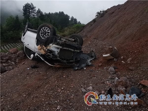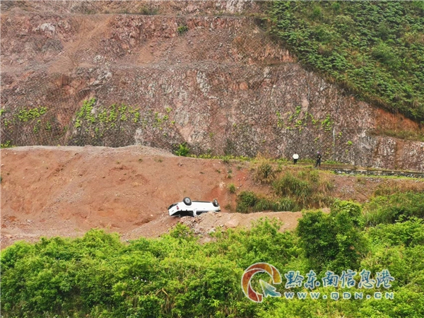 民警到達現場后,發現一男一女驚魂未定的在路邊等候,他們所駕乘的車輛在約5米的路外坎四輪朝天,車頭損壞嚴重,地上滿是車輛碎片。
