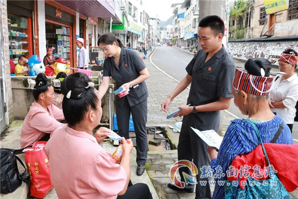 活動當日正好是“趕集日”,人流量大,通過在人流量密集的地方設置咨詢臺、發放防范養老詐騙宣傳手冊、現場法律解答等方式,向群眾普及防詐知識,同時還對沿街商戶進行了挨家挨戶的宣傳。