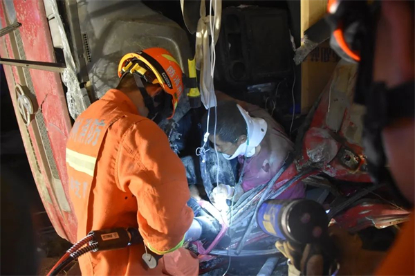 經(jīng)過(guò)一個(gè)小時(shí)的緊張救援后,消防救援人員成功將被困駕駛員救出,并移交給現(xiàn)場(chǎng)醫(yī)護(hù)人員。
