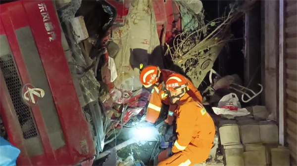 消防救援人員到達(dá)現(xiàn)場(chǎng)后,現(xiàn)場(chǎng)情況為一輛裝載水泥的貨車(chē)側(cè)翻在路邊民房旁,駕駛室向內(nèi)凹陷,嚴(yán)重變形,車(chē)門(mén)和方向盤(pán)緊緊卡住駕駛員,導(dǎo)致駕駛員1人無(wú)法脫困,被困駕駛員情緒穩(wěn)定,暫無(wú)生命危險(xiǎn)。
