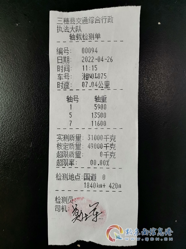 三穗縣治超辦共出動執法人員11人,執法車輛3輛,檢查機動車維修企業1家,路面執法檢查檢測貨運車輛22輛,簽訂嚴禁超限超載運輸承諾書3份,簽訂三穗縣機動車維修行業安全生產及履行規范改裝責任書,未發現超限超載車輛。